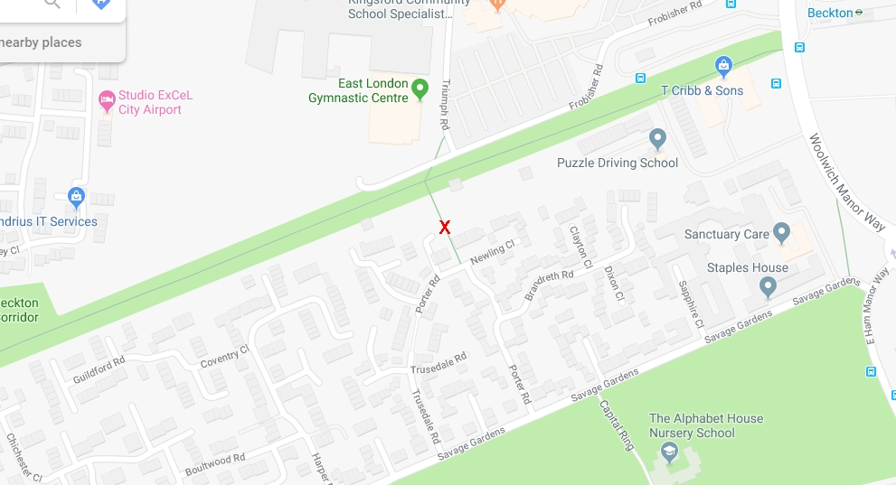 Getting to Beckton Park was simple enough, but unbeknownst to me, two challenges remained. The first one was a deeply inconvenient bit of maintenance. I was heading up to get the bike when a not-so-cheery council worker told me the path I needed to take was closed. “How closed?”, I asked, as it was obvious they were just setting up. He held to his party line, but I sensed he wasn’t going to make much fuss about a bit of light trespass, so I defied the sign (and inspired a few others to do likewise) and carefully made my way through. Phew! If it had meant wading through molten tarmac, I would have made a different decision, but a diversion would have been a real pain in the arse – map below indicating the closed path.
