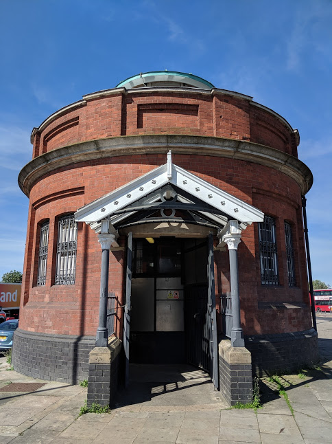 Eventually I got through this semi-industrial residential featureless landscape, trespassing on another actual live building site only slightly (genuine error that time and the foreman on site was very helpful), and made it to one of my favourite bits of the journey – the Woolwich Foot Tunnel. First you go into this little building: