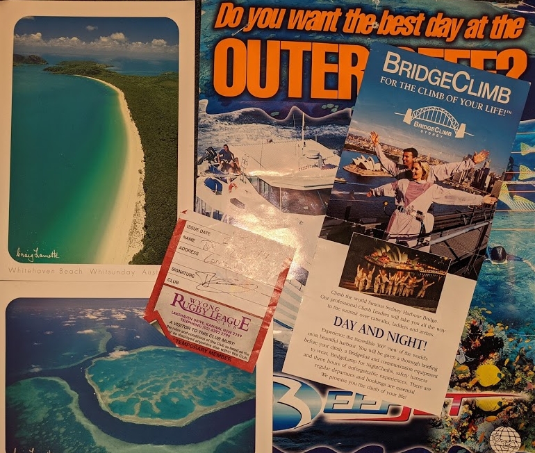 I’ve been to Australia a few times with work, catering to telecoms clients including an off-site in the Blue Mountains (wine tasting, horse riding), a senior engineer for Telstra or Vodafone taking me out on his power boat round Sydney Harbour, and more recently a Big Deal meeting with a major agency. Always a fabulous pleasure. The photos below are from 1999 when a few of us went out for a friend’s wedding. It was all great fun, going up the coast from Newcastle to Airlie Beach in a minibus together. The Big Banana in Coffs Harbour, diving in Airlie Beach, general larking around. A subset went up to the Whitsundays too, more larking, and I dived the outer reef on a fast boat, what an opportunity. Two other fond memories, back in Sydney: the first, was getting a lift back from the wedding with a few guys I didn’t really know, but who happened to be going on a “stripper cruise” in the bay. Blazing sunshine, a bunch of lads, big boat, free buffet, well-stocked bar and a few strippers. I was happy to have been able to take the opportunity. Secondly, whilst in Sydney I left the rest of the gang in a bar whilst I went off to do the Bridge Climb. The gang had been intending to move on and explore, but when I got back, 4 hours later or whatever, they were still in place, and had clearly become a fixture in the bar. So as I opened the door and returned, I was given a ridiculous, but hilarious, hero’s welcome standing ovation.