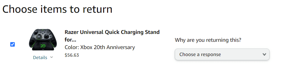 Secondly, and far more mysteriously, I received a package today via Yodel, from Amazon, addressed to me. Contents: a universal charger for Xbox controllers. I do not have, and never have had, an Xbox or controller for same. Weird. I definitely didn’t order it – I checked on amazon.co.uk then realized the receipt inside (which presumably mean somebody didn’t buy it as a misguided gift) is in $, so I could indeed find the order through the Gift Returns search: