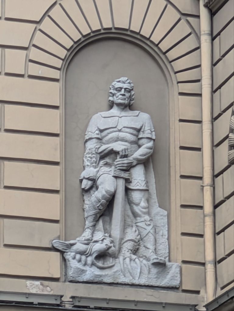 - Latvia have had to invent their shared cultural heritage, as there’s no body of literature, or very old buildings. They were basically pagan peasants until the Germans bossed them around and various states took the reins. For example, the legend of the Bear slayer (Latvia) Vs the Black Knight (all their enemies). Brilliantly, even in this folklore, Latvia doesn’t win! “The fight continues…” which seems pretty fair.