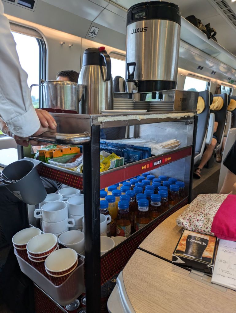 The 0833 to Krakow was on time and definitely not the service coming from Vilnius! Very modern, with a first class compartment including table service with a menu of options – croissants and 1 round of drinks (coffee and apple juice) included. Very pleasant indeed.