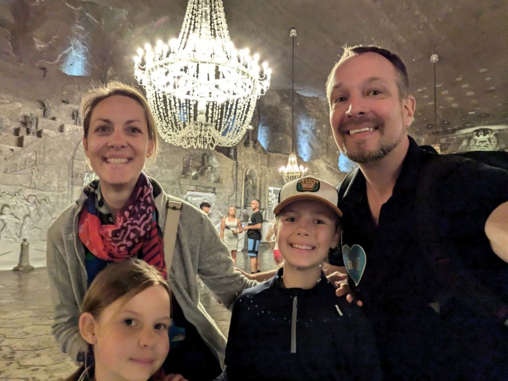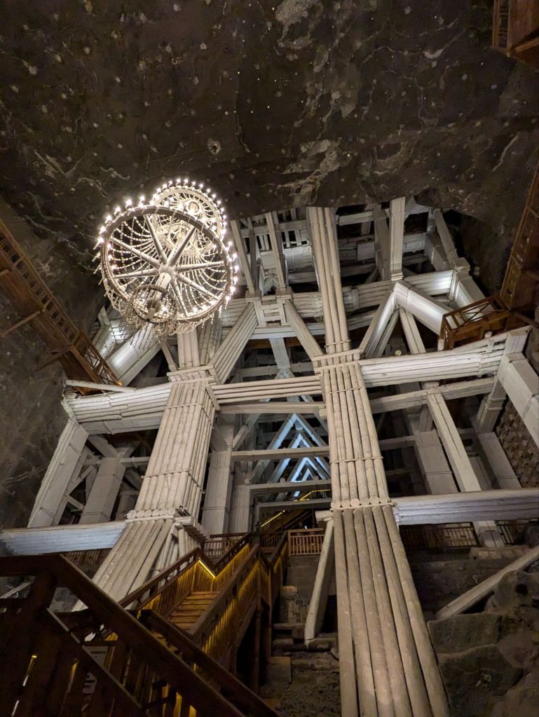 Next day, another run for me, very nice, sunny, easy navigation. I also stumbled on a great playground, which would come in handy later. Breakfast, then a coach pickup just round the corner (very handy being in an apartment so close to the station!) to go to the Wieliczka Salt Mine. A short coach trip, and a very busy mine with big groups with guides going into the mine like a machine being fed with fuel. It was a long tour underground, about 3km walk over 2.5 hours. Not as cold as I expected (I didn’t need my jumper or lower sections of my trousers, nor even my socks to wear in my sandals, which I’d brought in case of danger of frostbite!), and fascinating to see what the miners had excavated, almost entirely by hand, hardly any explosive or digging machines, over the 500 years or so of the mine’s life. And we only saw a fraction of the entire mine, apparently.