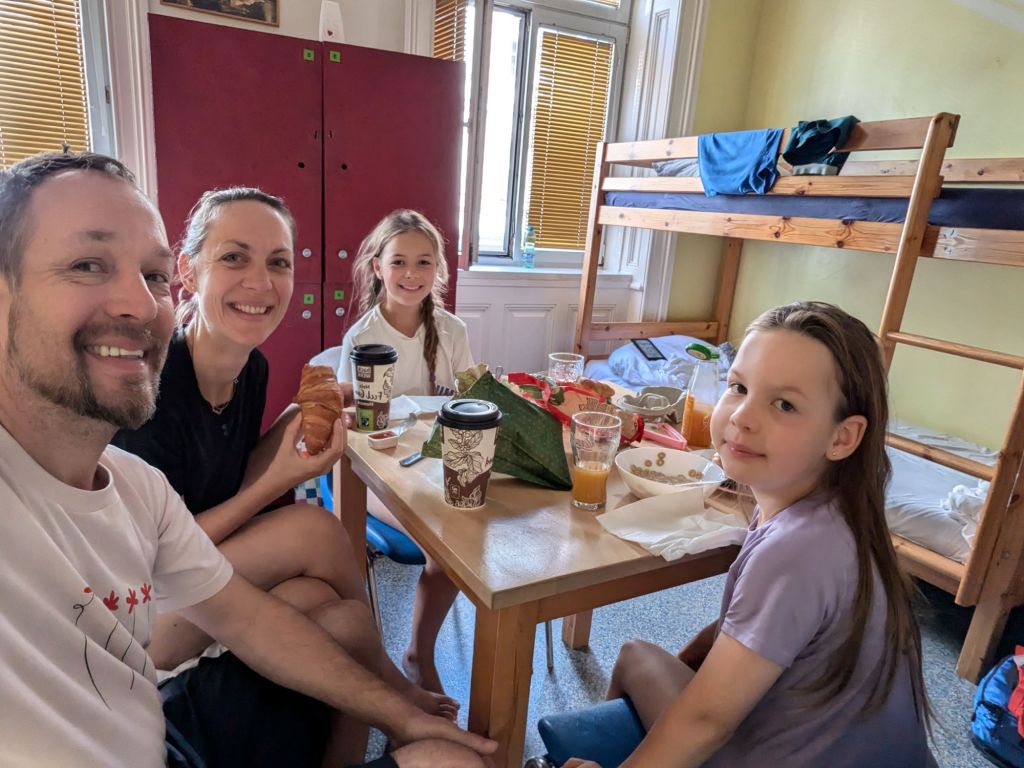 We made it to a coffee and cake place called “Sluka” which restored us physically while we also patched up G’s leg. Back to the hostel for some washing and rest. I had a lovely chat with two young New Zealanders doing an epic trip, I wish them well with their future travels, careers and the Budapest music festival! 😃