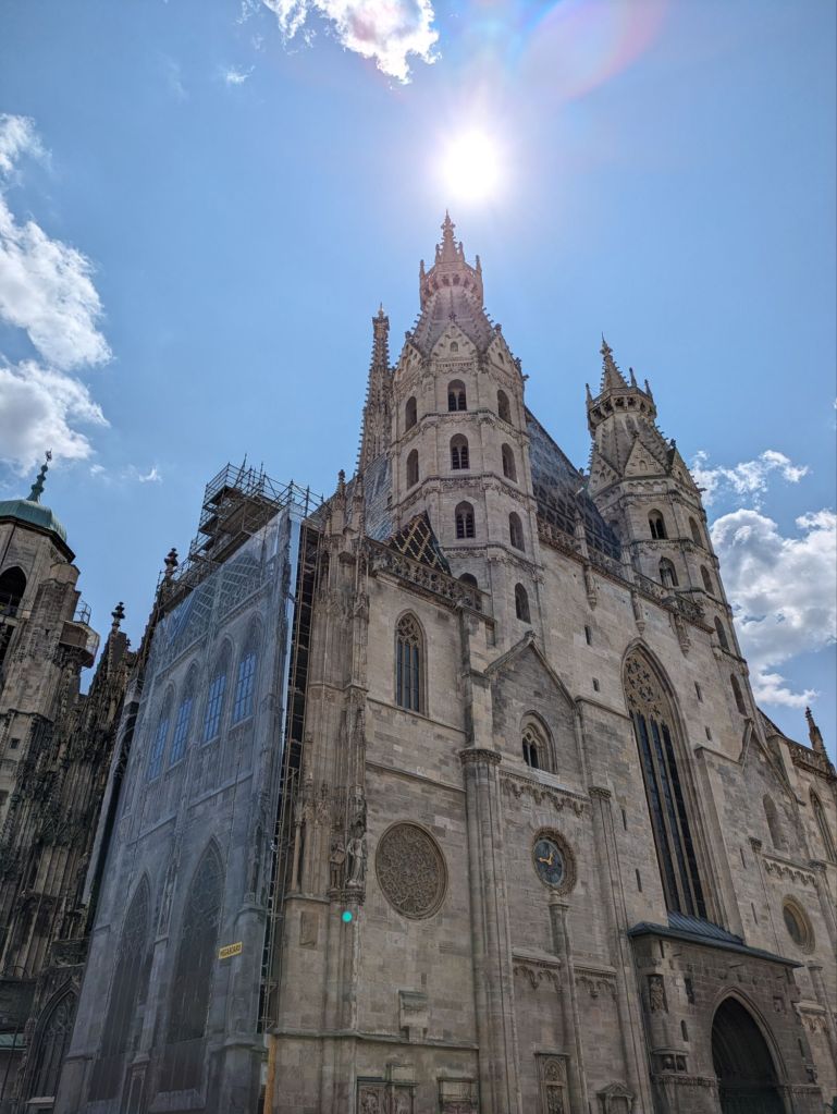 The next day, we took a tram into the centre for a bike tour. There were 14 in the group, which was too many. There were lots of red lights, and you could get 8 people through, but not 14, so it was heavy going. Eddy the tour guide (well in his sixties, I’d say) was affable, and spoke like Arnold Schwarzenegger, but his patter was irritating. The basic thesis was “we were great for hundreds of years, now we are less great, but still amazing” He kept banging on about having only 53 homeless in a city of 2 million people – this was manifestly false as I’d personally seen at least 20 on my run, many sleeping in children’s playgrounds, and one was asleep on a bench outside one of the churches he took us to. So then you can’t believe anything he says. Oh, and how many times Vienna had won CNN’s “most liveable city” award. Well, it doesn’t get my vote.