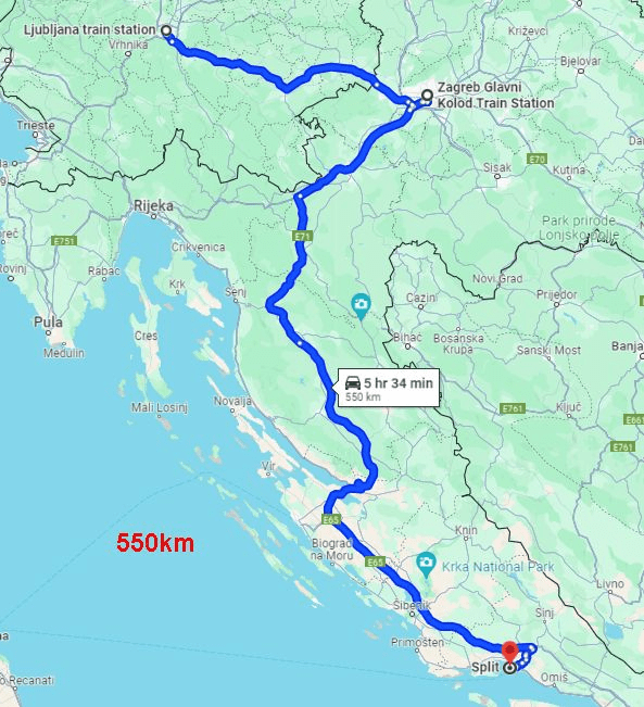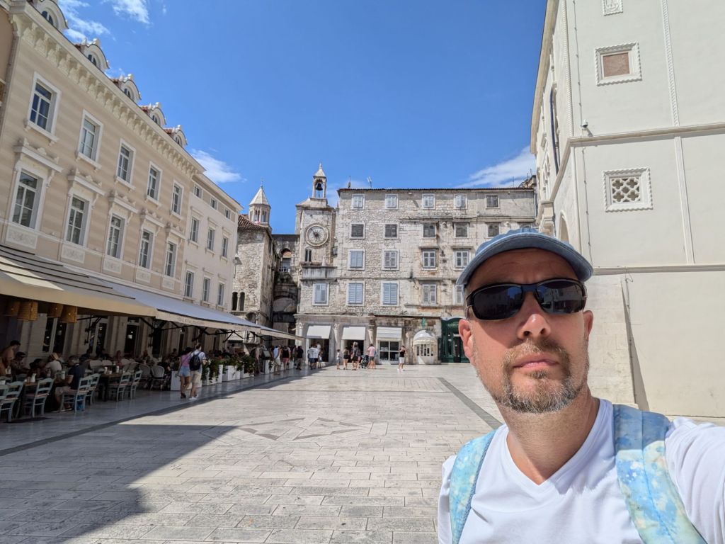 Not an amazing night’s sleep but WAY better than the previous leg. The guard woke us up an hour out from Split and gave us water, apple juice, pretzel sticks and chocolate croissants. Not bad! We were all in pretty good humour when we arrived in Split about 7.30am.