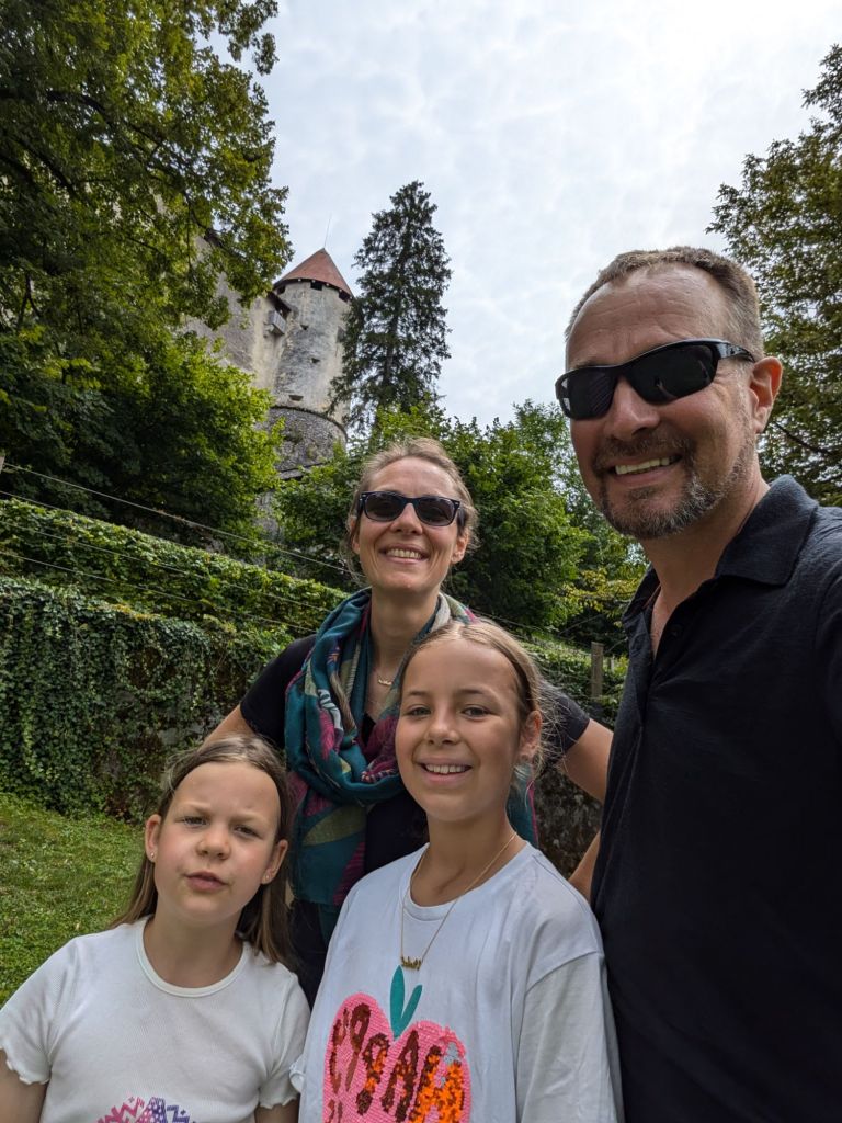 At the castle though, it was going to be 48 euros for all 4 of us to go in – fine if we were spending half a day there, but we really just wanted a coffee! 🤣 So we had some sweets from the bag, a swig of water and yomped back down again.