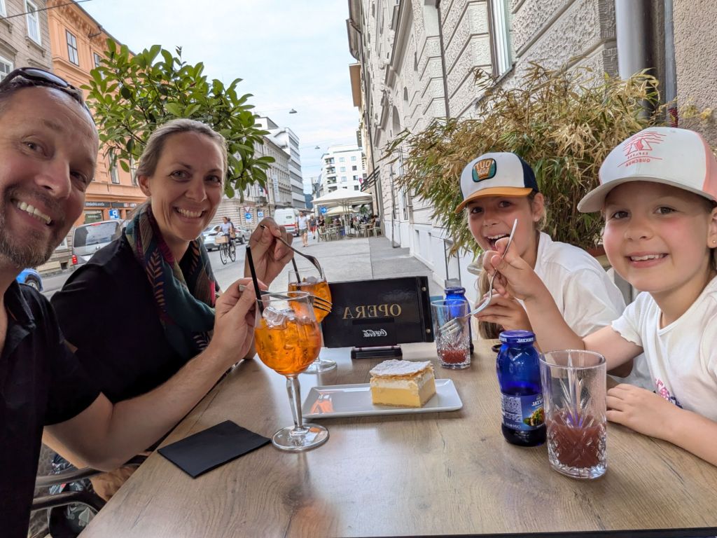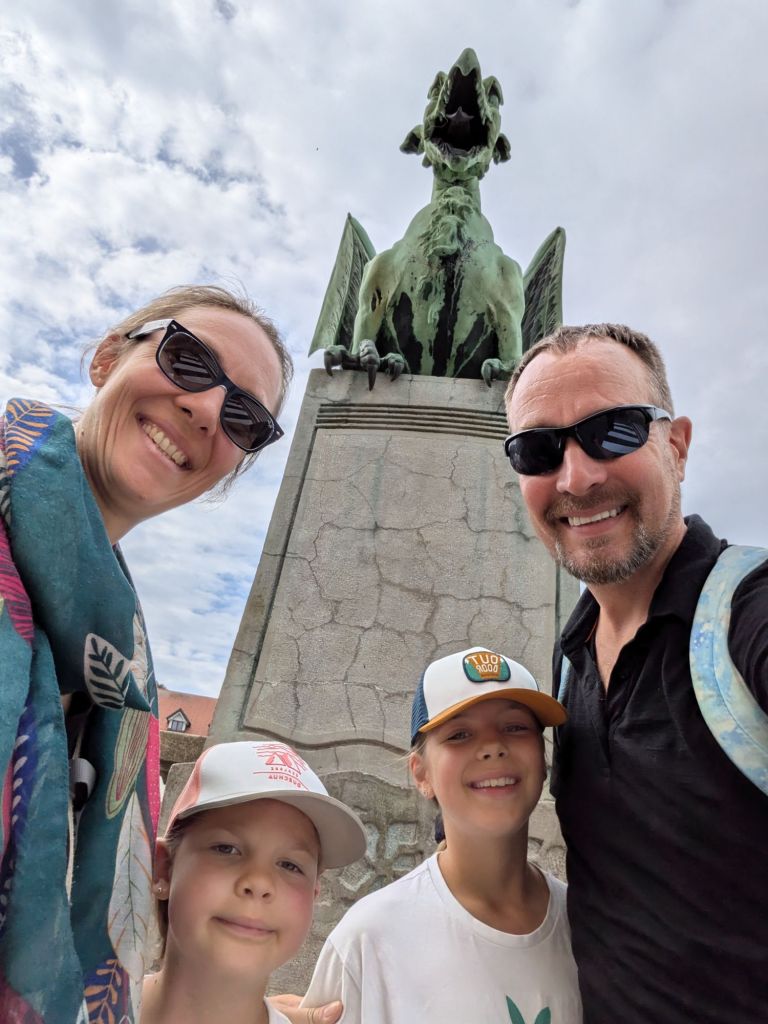 Inevitably, we went back to the lakeside beach thing fora bit of a swim and use of water slide. Only quick though as we wanted to be on the 3pm bus. We collected ice creams on the way and at the bus station, I got our bags out of storage (always scary to find that there’s no authentication in getting 5 bags that you assume are secure, no request to see a receipt, just point out which ones are “yours”) and as I came out, a bus to Ljubljana pulled in. “Well, we’d better be on that”, I thought. It was in fact the 2.40pm bus that was running a bit late (not surprising, the traffic was shocking coming into Bled), but of course we stashed bags and hopped on. However, there was unforeseen collateral damage – G didn’t have time to finish her ice cream and hadn’t even got halfway. 😟 We are now on a quest for the rest of the trip to find Trolls flavour ice cream. 🤞