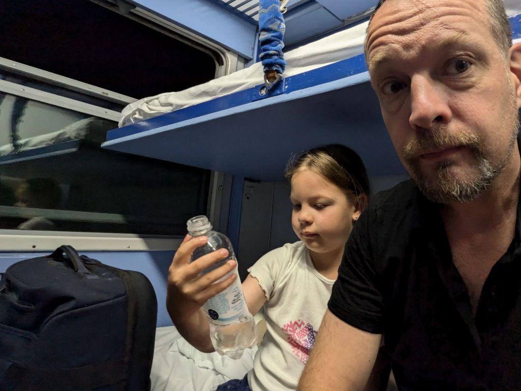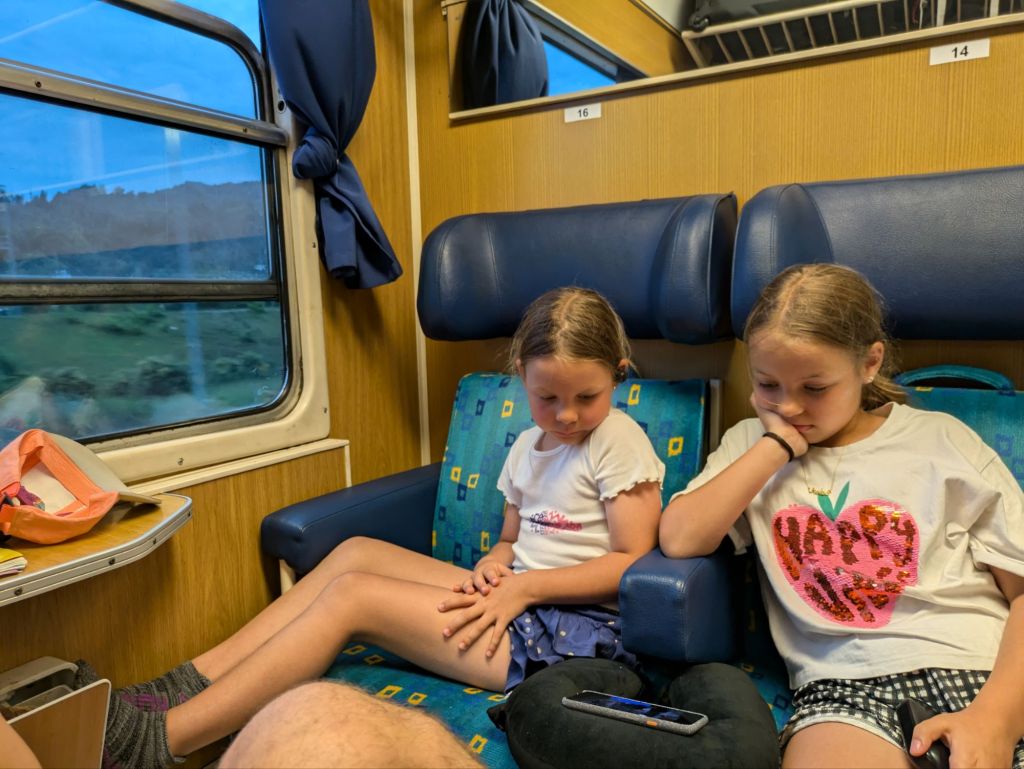 There still ended up being people stood in the corridor for the 3 hour journey. And fortunately there was plenty of time before our connection to the sleeper to Split. But our expectation that we’d at least be able to walk around a bit outside the station vanished. By the time we arrived, we were all knackered – the overbooked train also had no air con and no power sockets. My old phone held out for the girls to watch 3 episodes of Alexa and Katie and listen to some music, thank goodness.